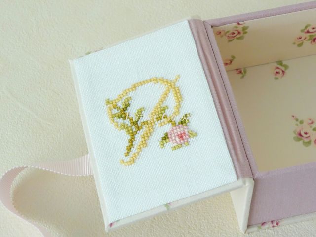 こちらは『クロス・ステッチ復刻図案集』という本を参考に刺しました。笹尾多恵さんの図案です。アルファベットに薔薇がデザインされていて素敵ですよね♡