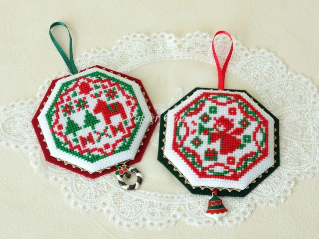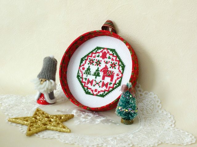 ステッチしたものをフエルトに貼るという、初心者向けのキットでした。意識していませんでしたが(というか半分忘れていた)、これもオーナメントですね。