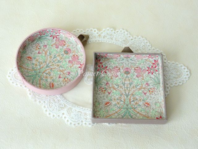 今回の作品はパピエコトンのカルトナージュ教室の体験レッスンの作品で、壁掛けにも置き型にもなるプチトレーです。
