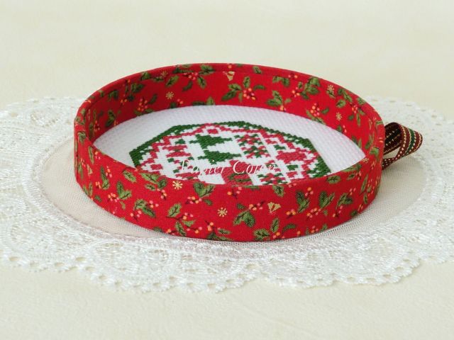 そこで今回は、クリスマスモチーフのクロスステッチでカルトナージュ教室の体験レッスンの作品を作ってみました。