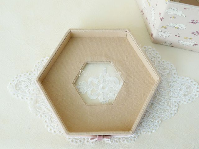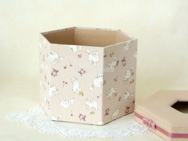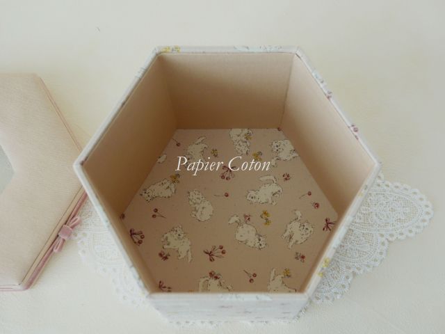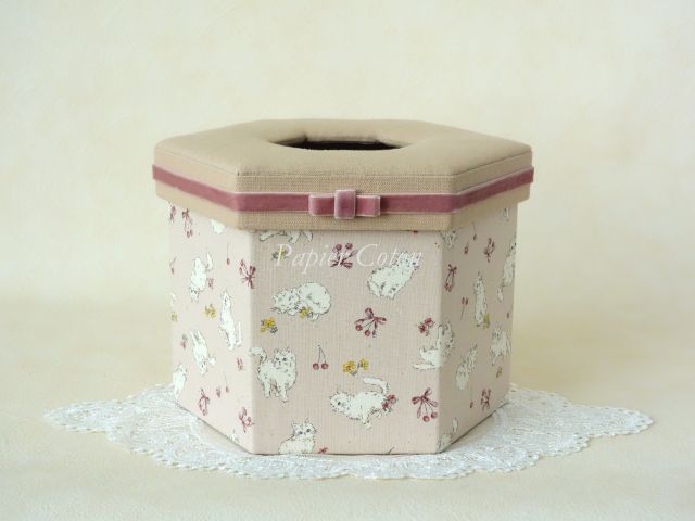 今回ご紹介するカルトナージュ作品は六角形のティッシュボックスです。