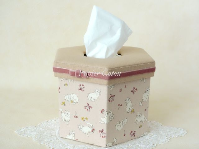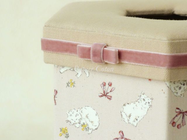 箱に使用した生地のふわふわもふもふの白猫ちゃんに似合いそうだと思って選びました。