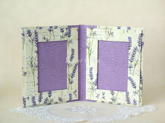 縦型はアンティーク風のラベンダー柄のプリントペーパーに、ラベンダーカラーのスキバルを合わせました。
