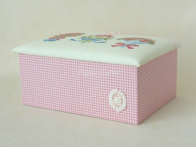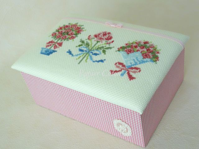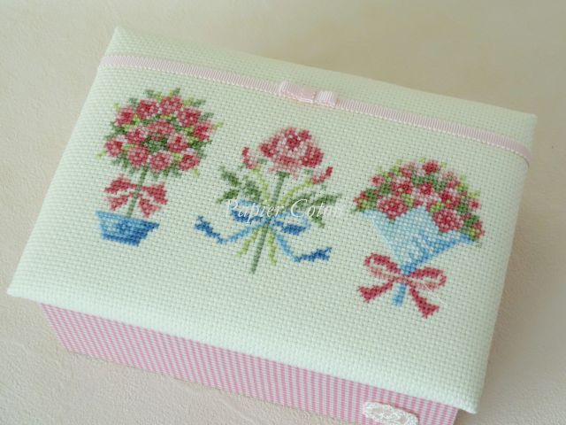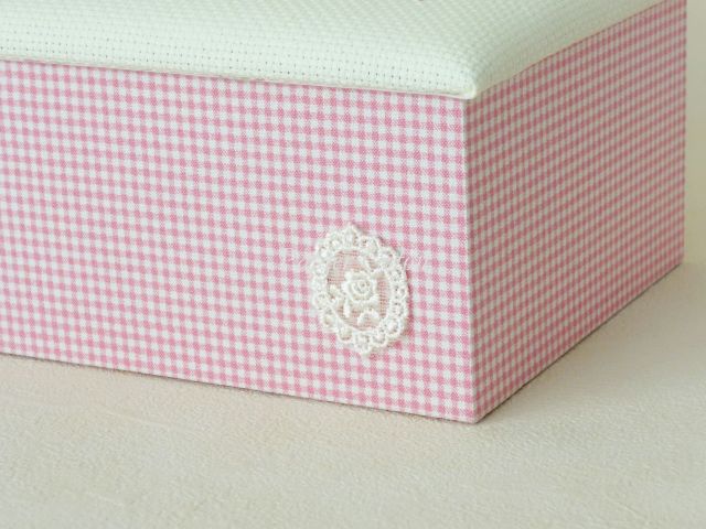 蓋にはクロスステッチした布を使いました。14ctのアイーダです。