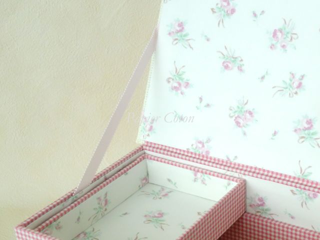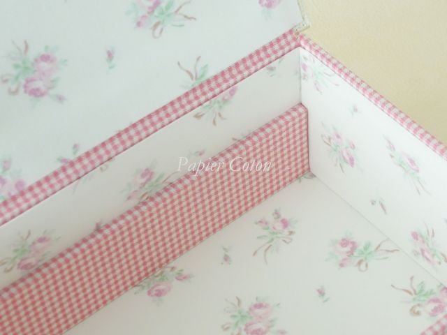 内側の生地は、YUWAの『ribbon and rose』という生地を使っています。色はA:Natural。薄い色合いの生地は箱の内側に使いやすいです。