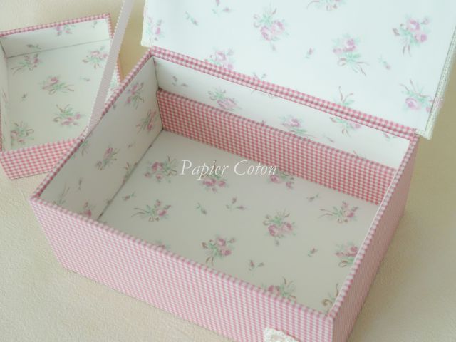 今回ご紹介するカルトナージュ作品は、中箱付きの箱です。パピエコトンでは上級コースの作品になっております。