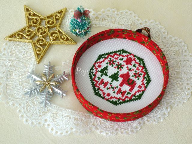 ステッチしたものをフエルトに貼るという、初心者向けのキットでした。意識していませんでしたが(というか半分忘れていた)、これもオーナメントですね。