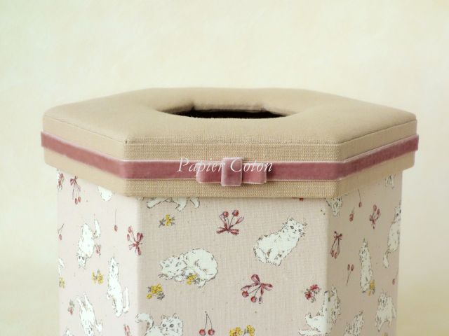 今回ご紹介するカルトナージュ作品は六角形のティッシュボックスです。