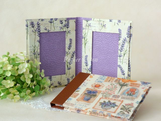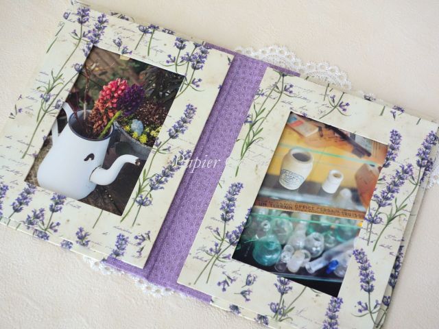 縦型はアンティーク風のラベンダー柄のプリントペーパーに、ラベンダーカラーのスキバルを合わせました。