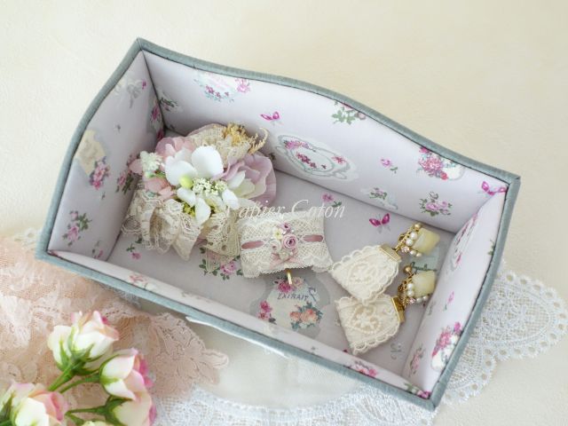 レース類をまとめている箱の中でずっと出番を待っていたので、やっと作品になって嬉しいです♪